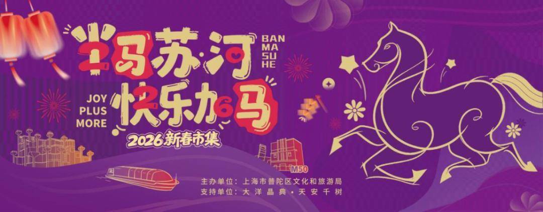 新春的脚步迈进苏河两岸,一匹匹骏马“跃动”在普陀大街小巷。2026丙午马年春节,上海普陀文旅推出100场“半马苏河 快乐加‘马’”系列文旅活动,重点推出六大特色活动,为广大市民游客奉上一桌老少皆宜的新春文旅盛宴!