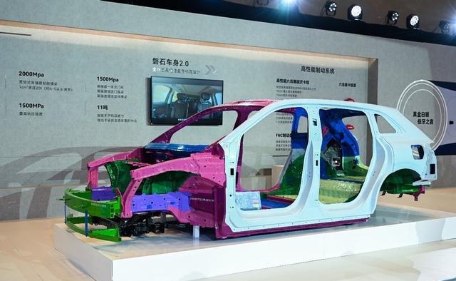 安全方面,新车配备目字形贯穿铝合金门槛防撞梁、一体式压铸铝制减震塔、一体铸铝后纵梁,关键部位采用2GPa热成型钢,整车高强度钢铝占比88%,扭转刚度40000N·m/deg,车顶可承受11吨压力。全系标配7个气囊,包括2个长度2368mm的侧气帘。